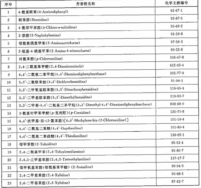 3)由于致癌芳香胺为重氮组分组成的偶氮染料,在人体排出的具有还原性的物质作用下会发生裂解,释放出这些致癌芳香胺。