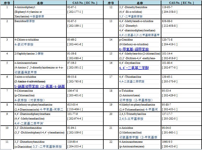 1)欧盟偶氮染料法规:EC No.1907/2006 Annex XVII and its mendmentsItem 43